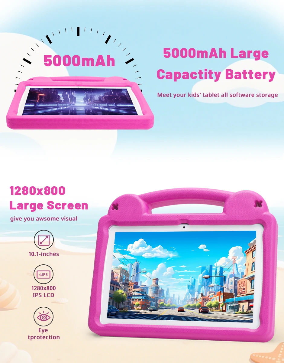 Powered by a 5000mAh battery, the tablet ensures extended usage without frequent charging, perfect for on-the-go learning.
