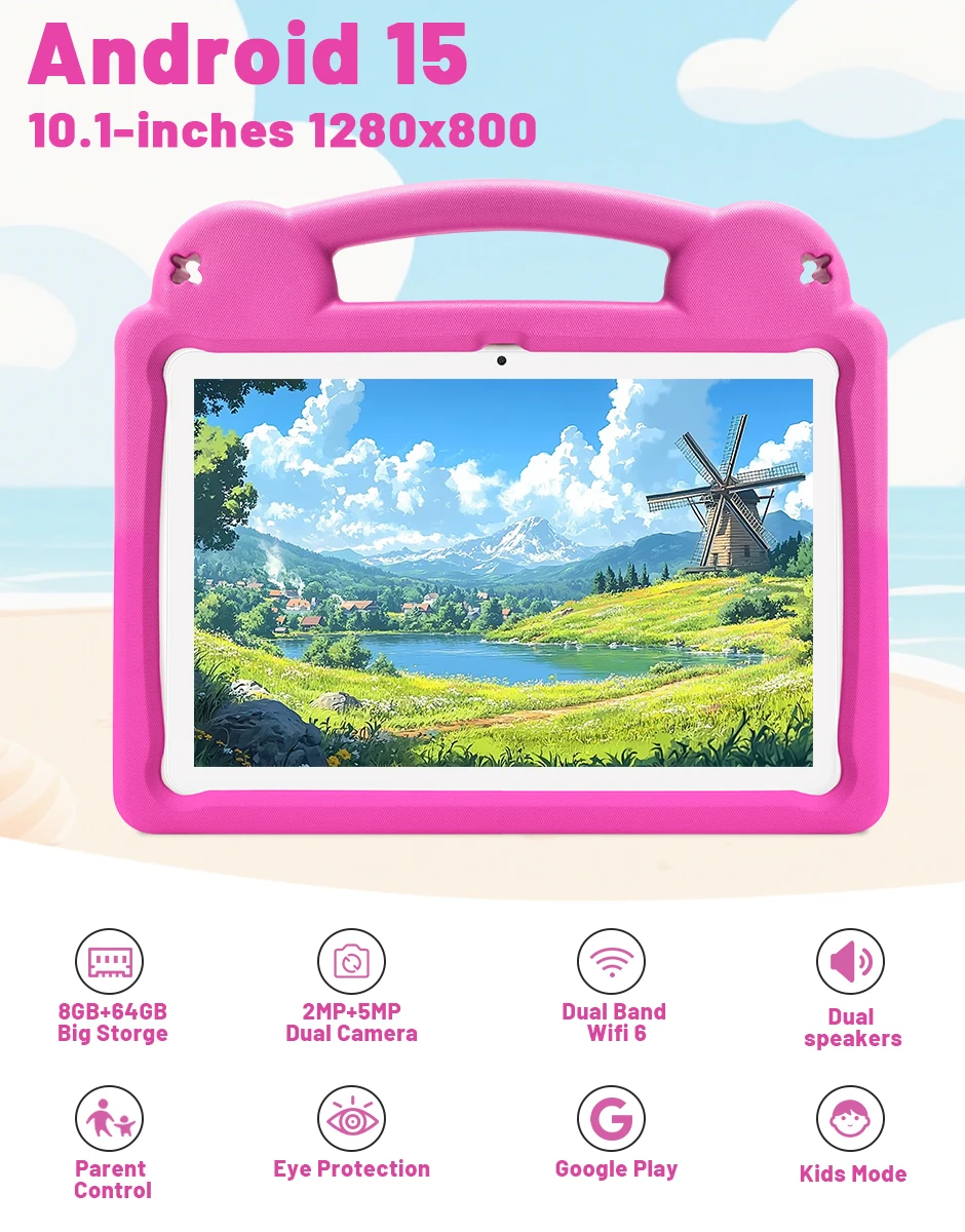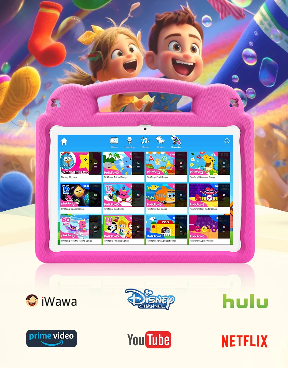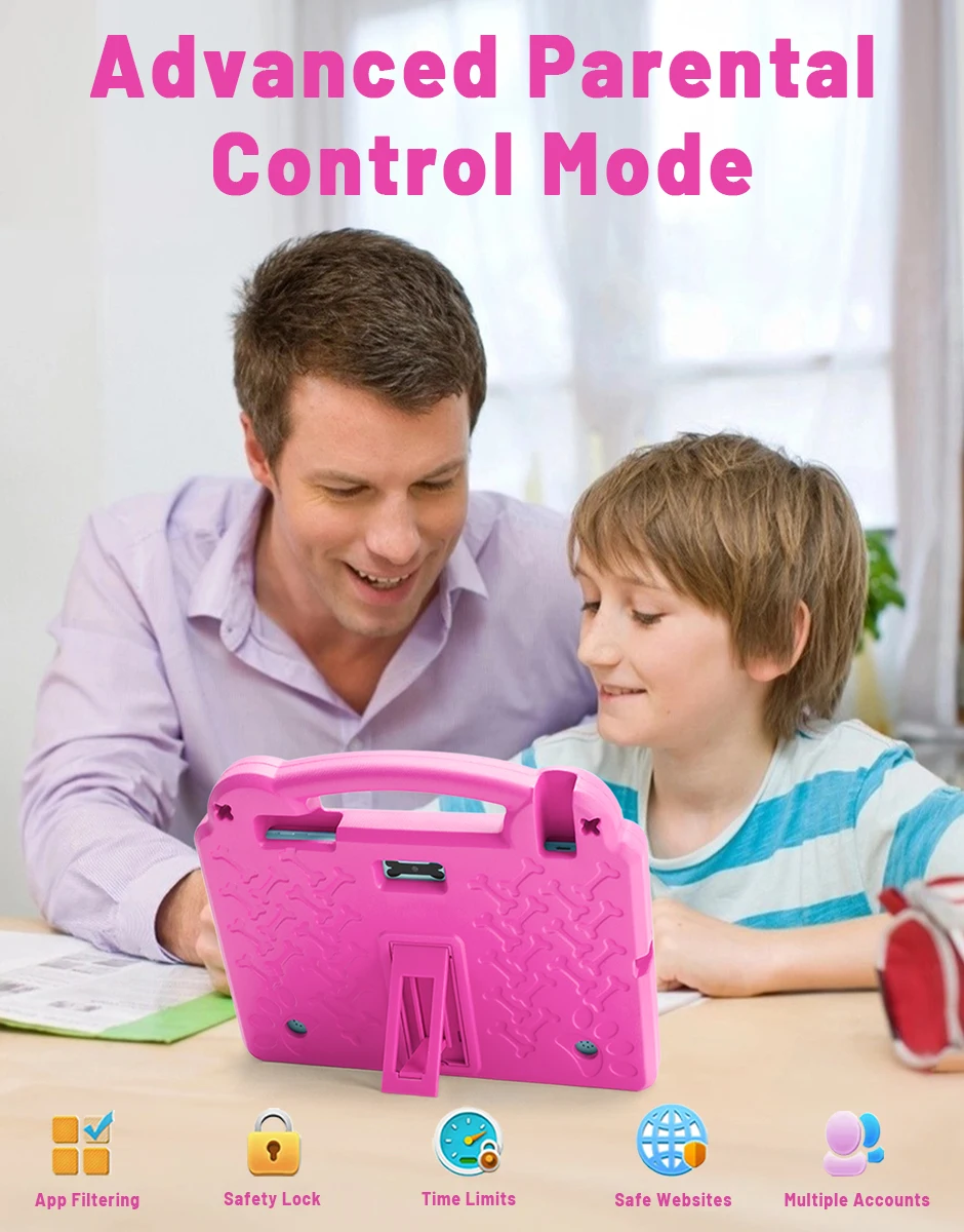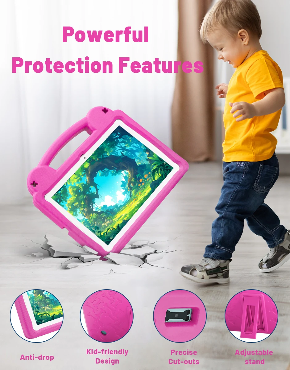 With a 10.1-inch IPS display, this Kids Tablet offers a clear, vibrant viewing experience for your child's favorite apps and games.
